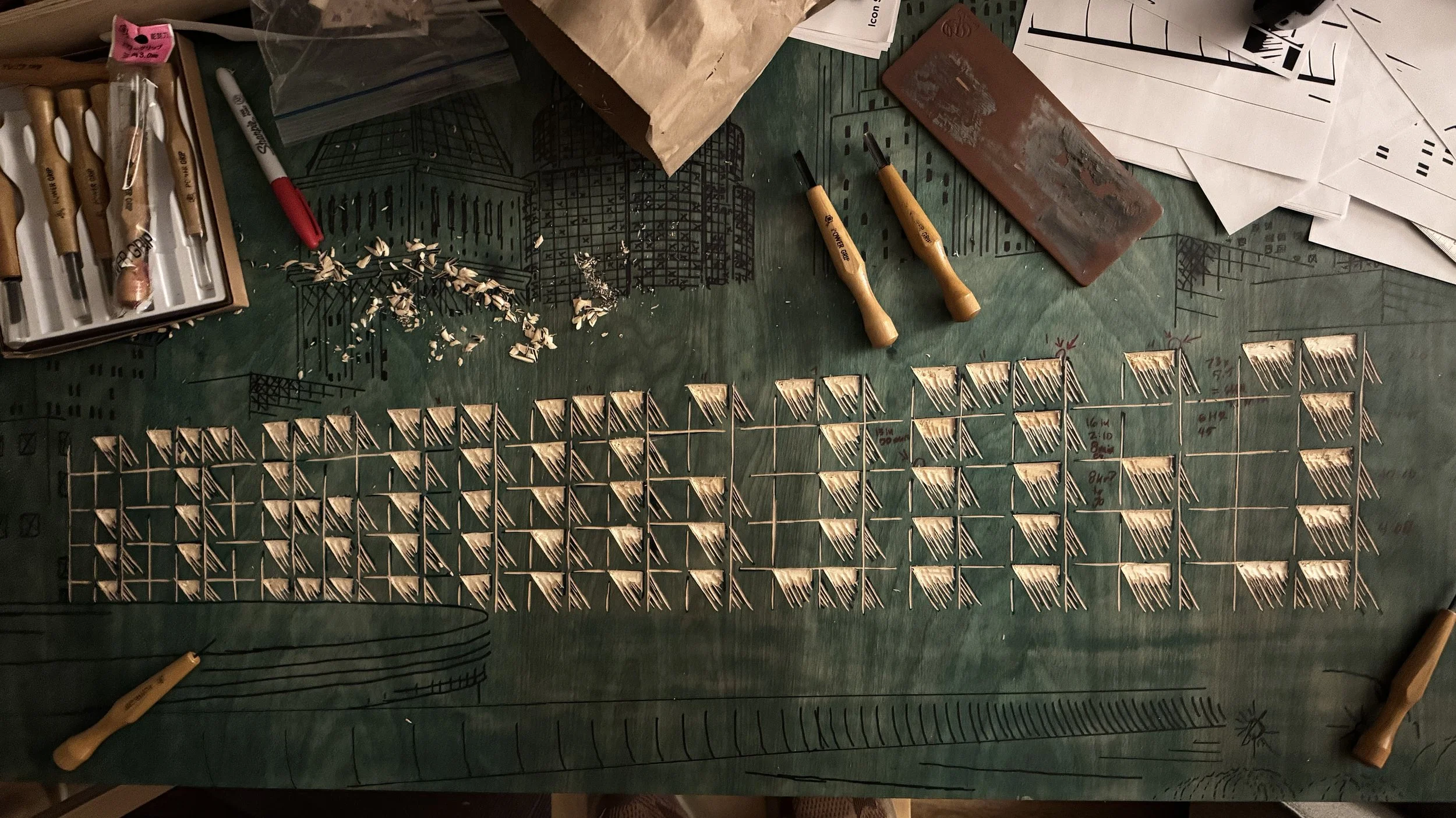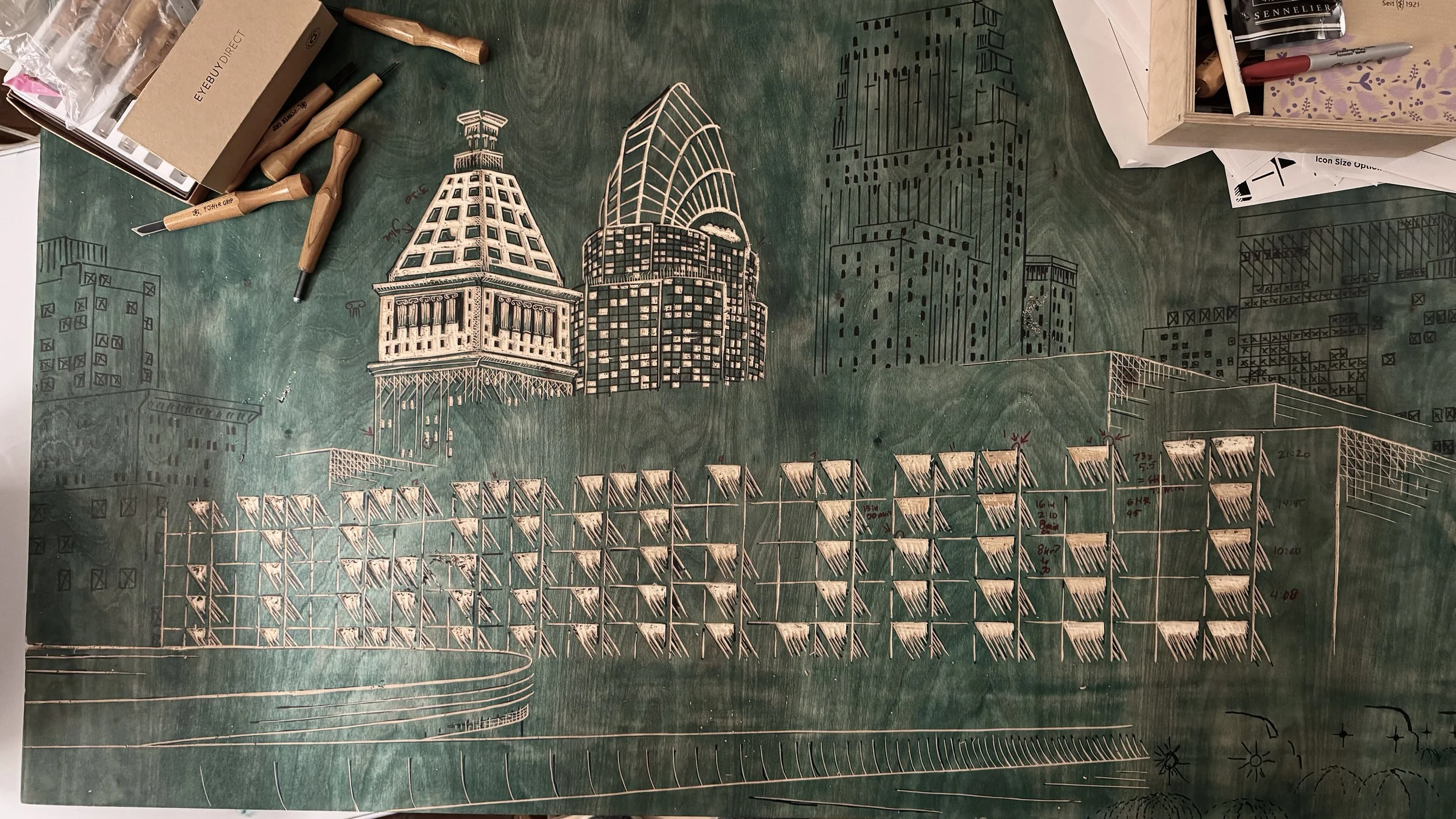 At the end of week 1, I completed the sign. I created a list of the composition’s elements and established a priority for completing areas just in case I run out of time. And definitely, the sign is first priority!